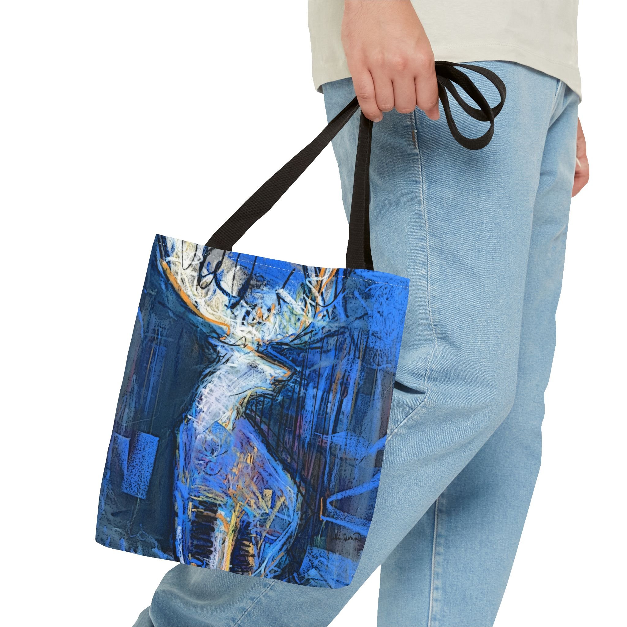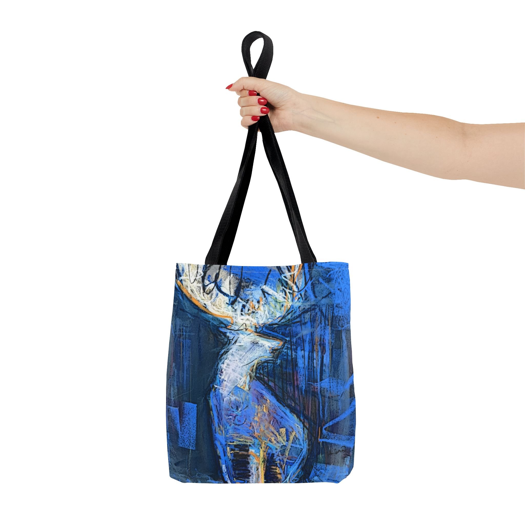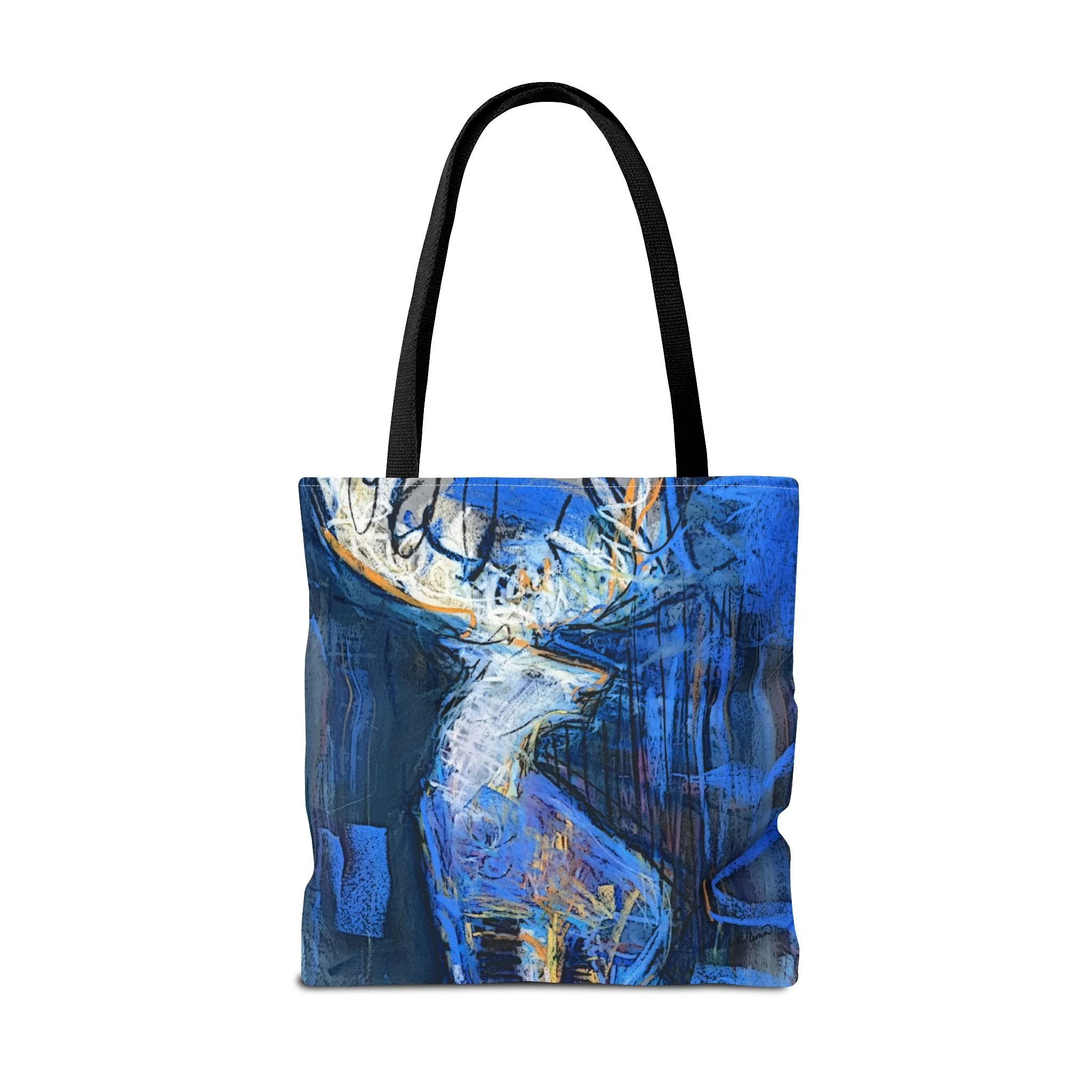 Deer Art Tote Bag — Blue Abstract Stag Canvas Tote
