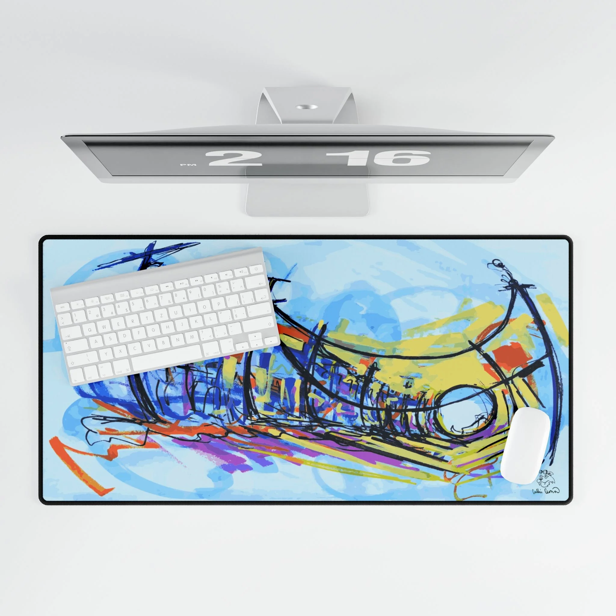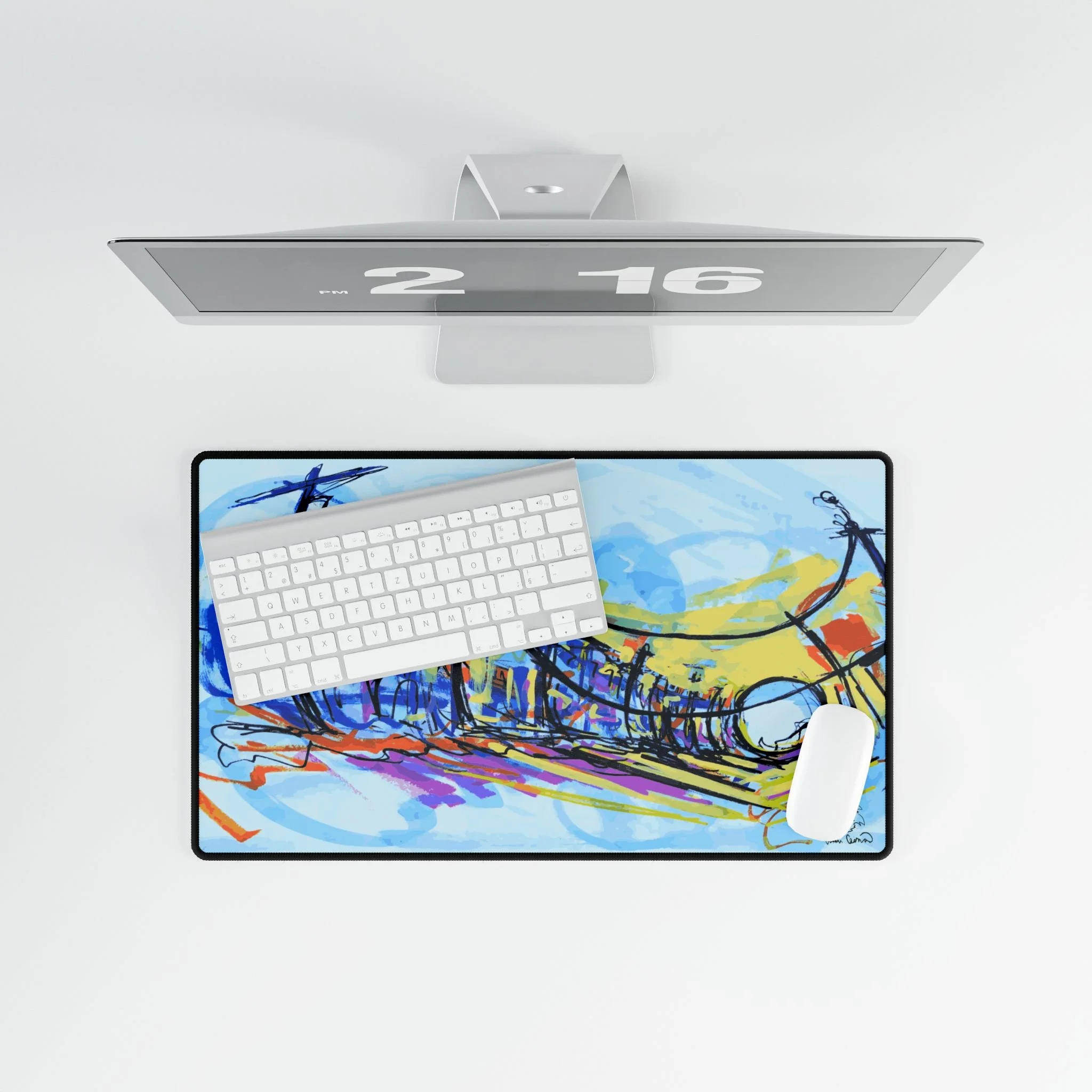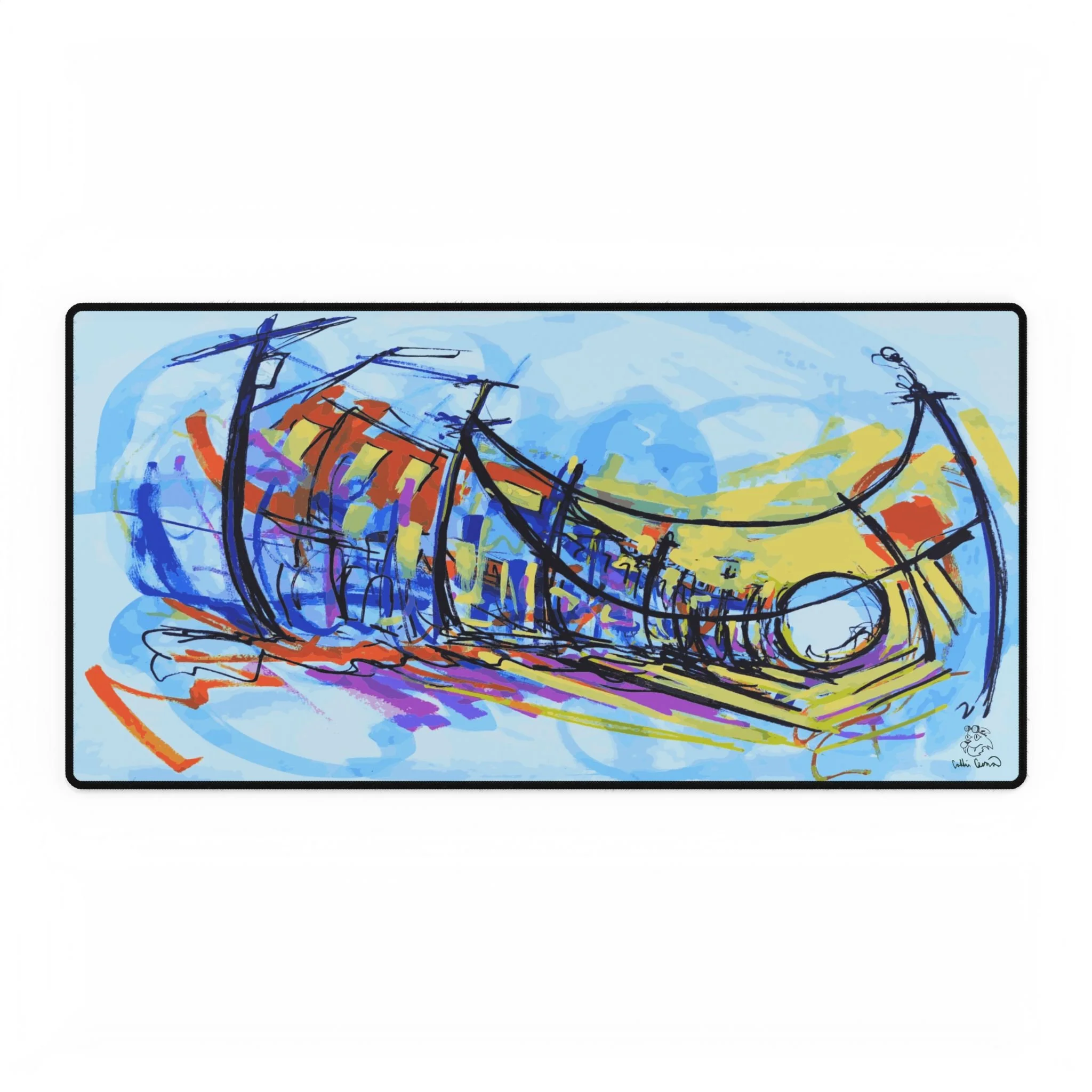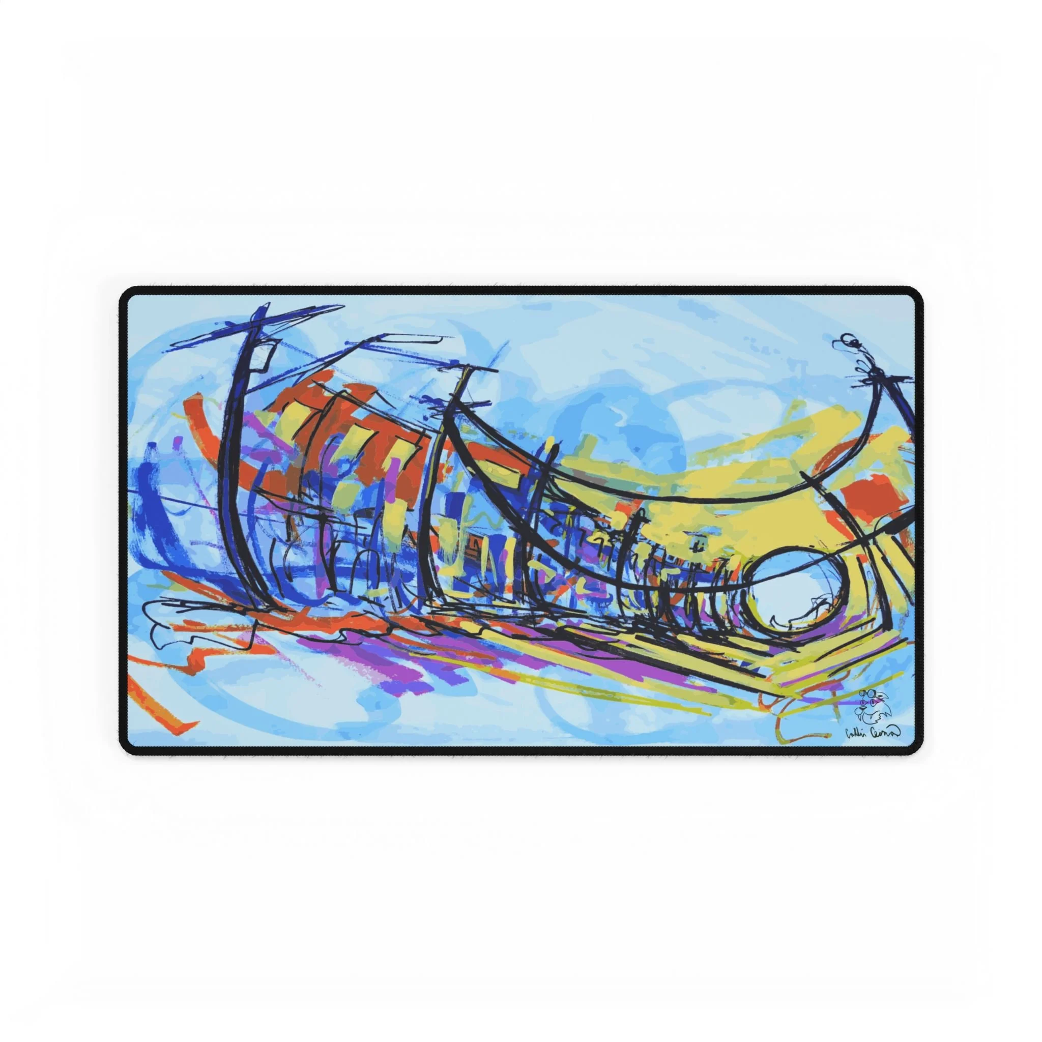 Breathe a little coastline into your workspace. This generously sized desk mat lays down a warm, golden background with a hand-drawn shore and distant islands—simple lines, bold color. It quiets visual clutter and gives your mouse a silky surface to glide across while adding a calm, creative mood to the desk. Slide your keyboard and mouse onto it to anchor your setup; let those ochre tones and minimalist waves remind you of slow mornings, late-afternoon light, and places where time seems softer.