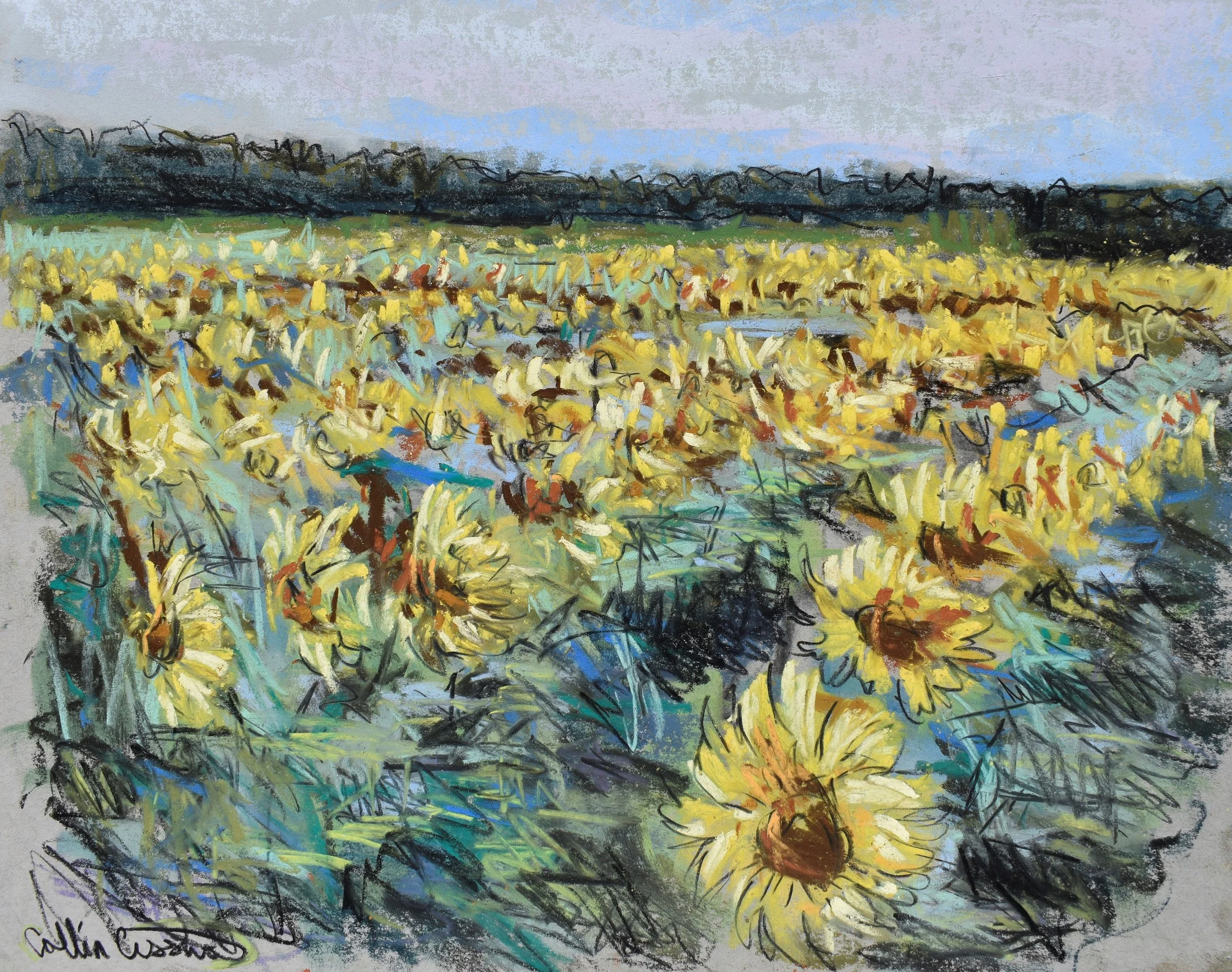 Triple Creek Winery Sunflower Field Soft Pastel Painting that was destroyed in the fire.
