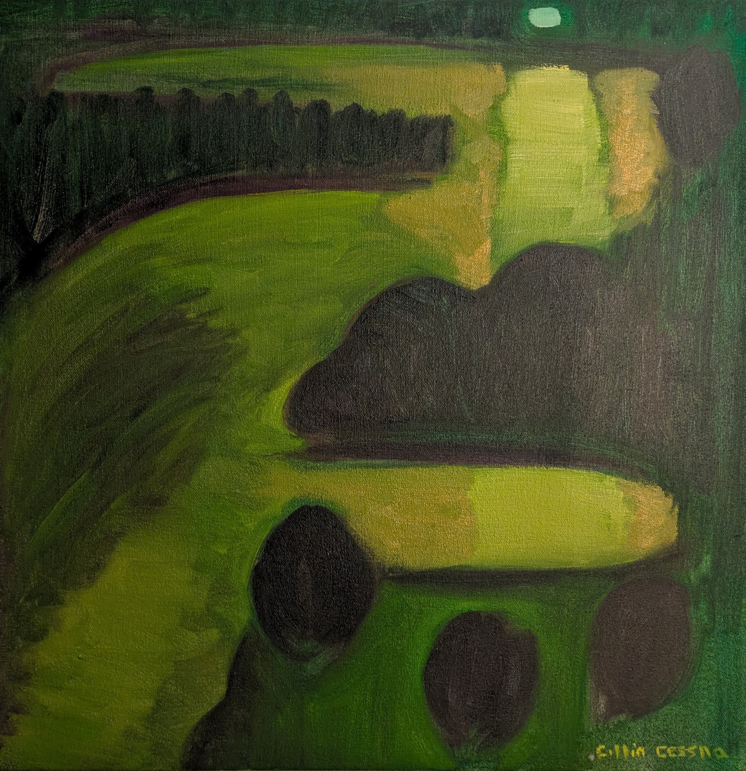 This painting acts as a sort of a map to all of my favorite fishing holes. I've made up names for all of these fishing holes including my favorite "Hav's Cove". We lost a gigantic snakehead at "Hav's Cove" last year. This painting is 24” x 24” on hand stretched canvas.