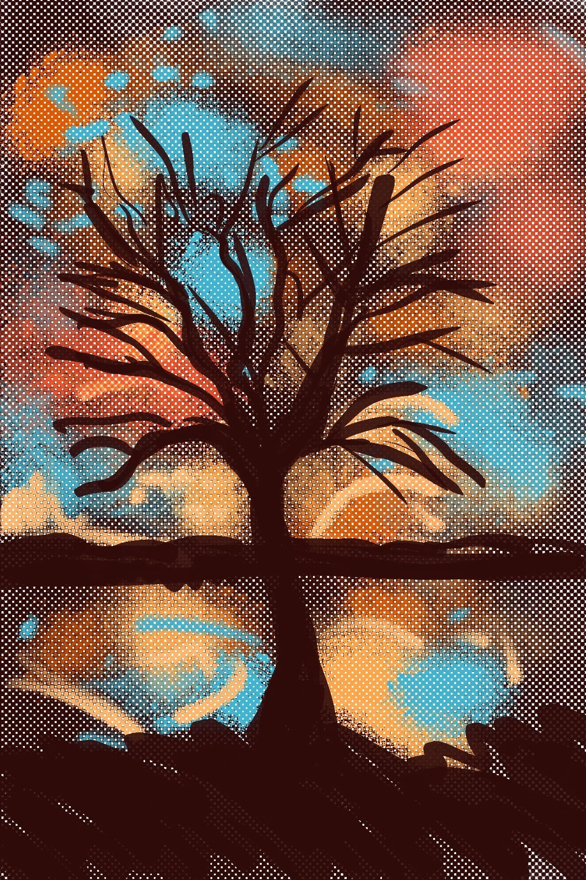 In the summer of 2024, I spent some time in Cambridge Maryland. I had a solo art show at the Dorchester County center for the arts. My family and I stayed at a friends house for the weekend. During that time I noticed the beautiful sunsets over the rivers on the eastern shore of Maryland. This is a digital drawing from a photographic reference of this wonderful tree overlooking a sunset in the summer of 2024.