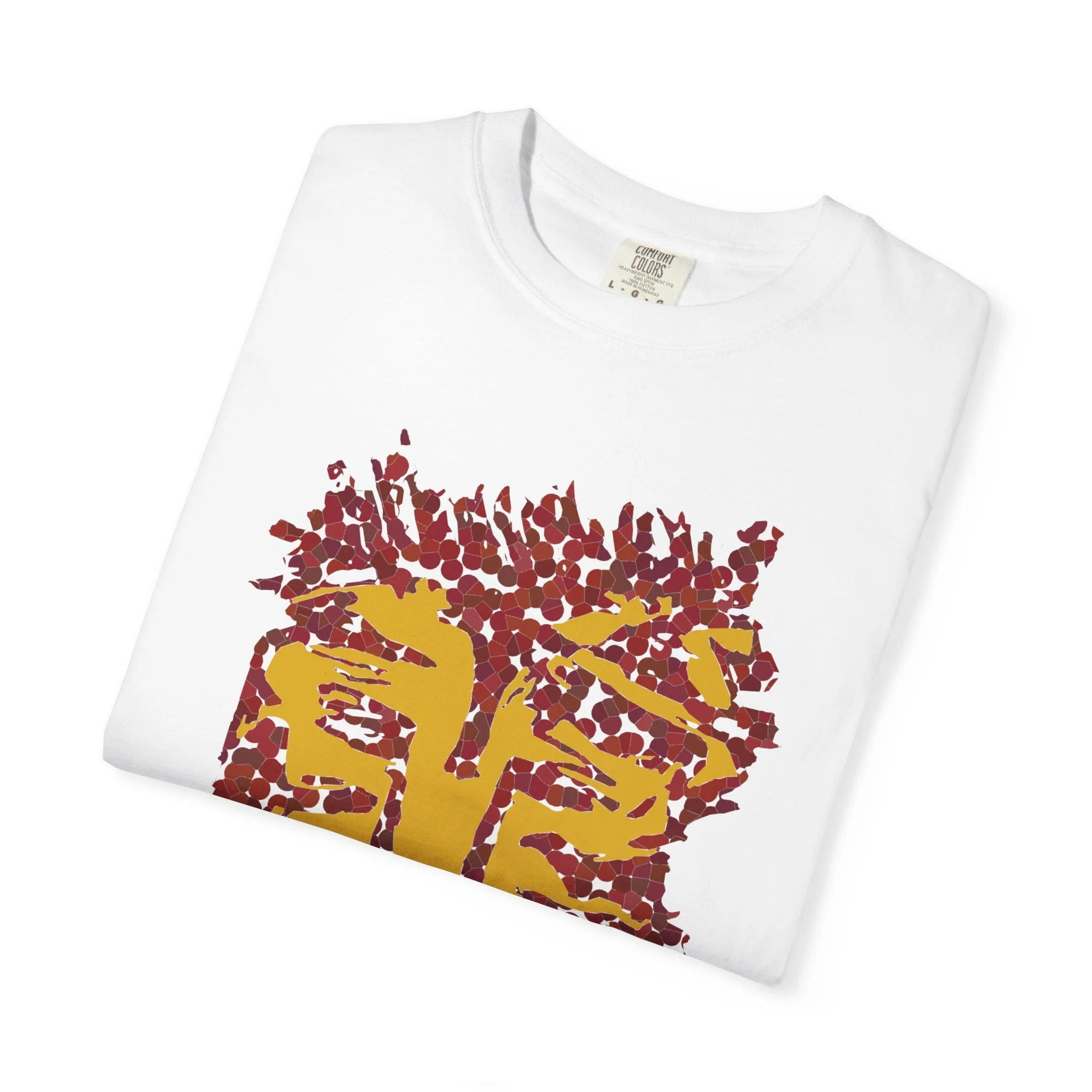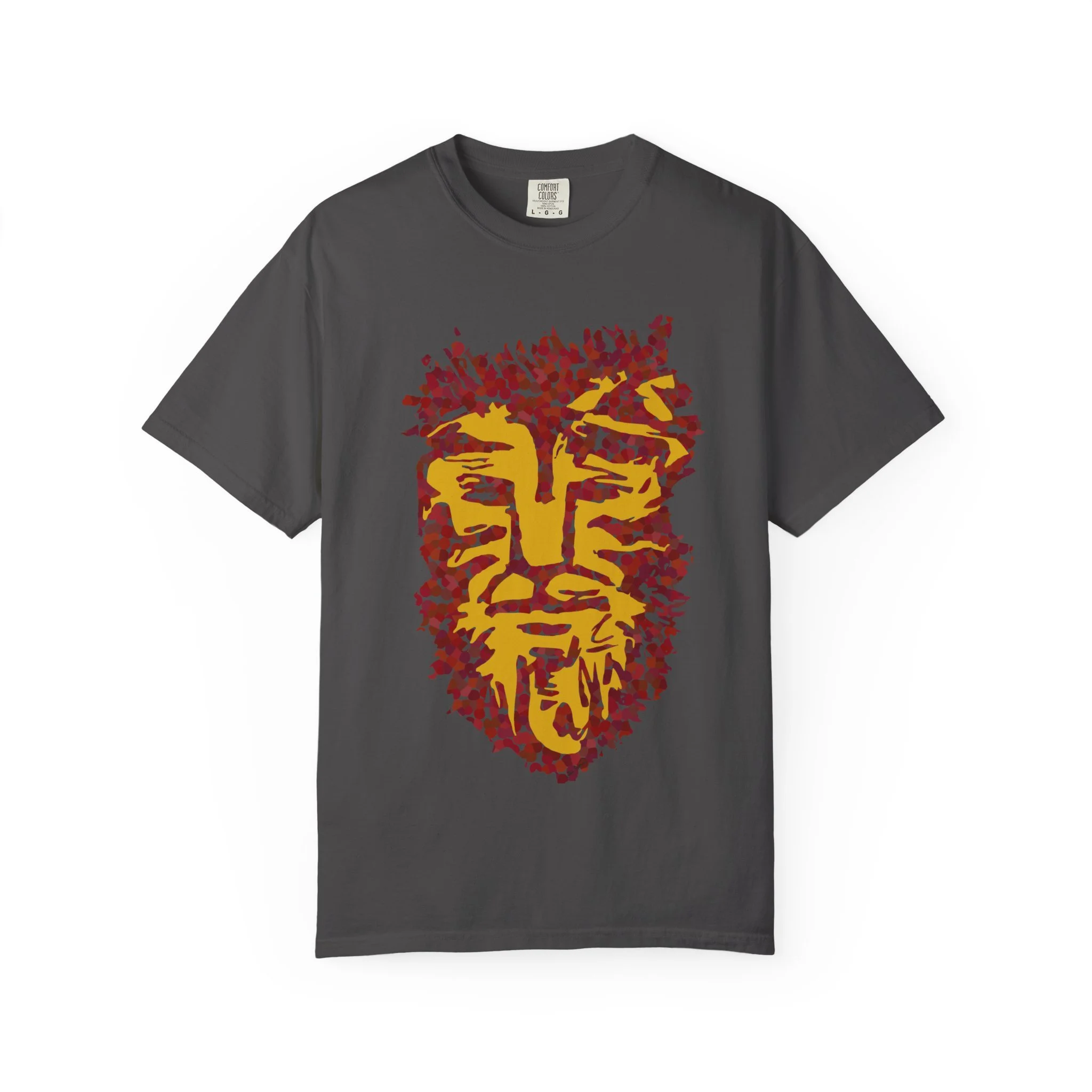 This relaxed-fit cotton tee carries an artful, slightly wild face motif that reads like a sun-worn mask or a storyteller’s spirit. The garment-dyed fabric gives the shirt a lived-in softness and subtle depth of color so the design feels integrated, not just printed on. Wear it when you want an easy layer that still speaks — for backyard gatherings, late-night bonfires, gallery hops, or quiet mornings with coffee. The roomy cut and medium-weight cotton hold shape while staying comfortable. It’s for people who favor personality over polish and who love clothing that looks like it already has a history.