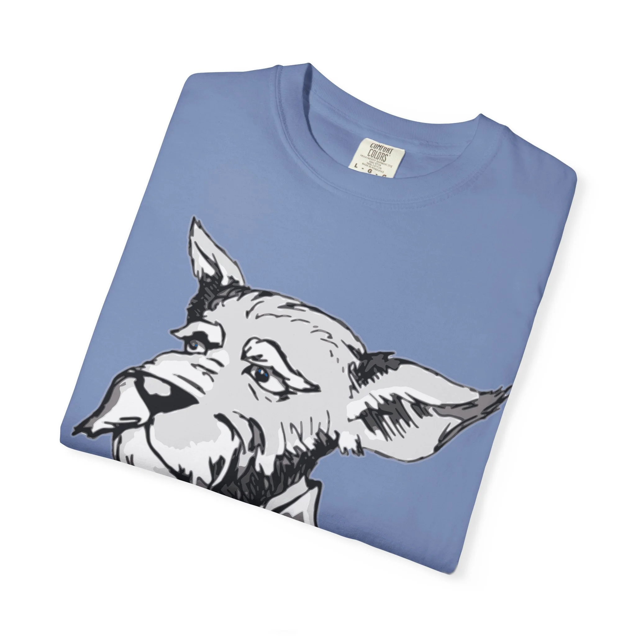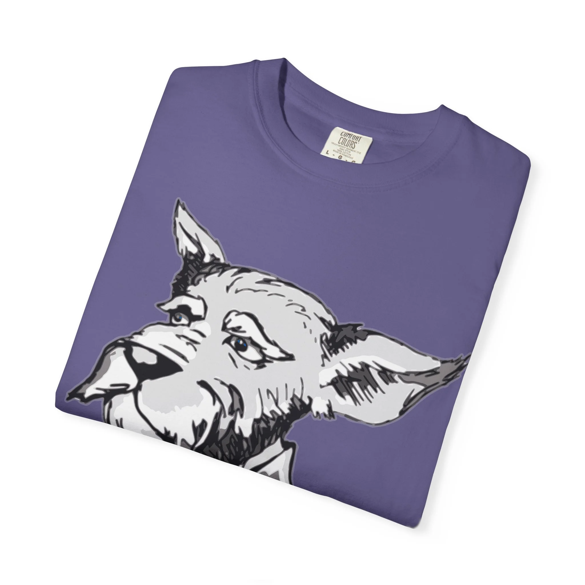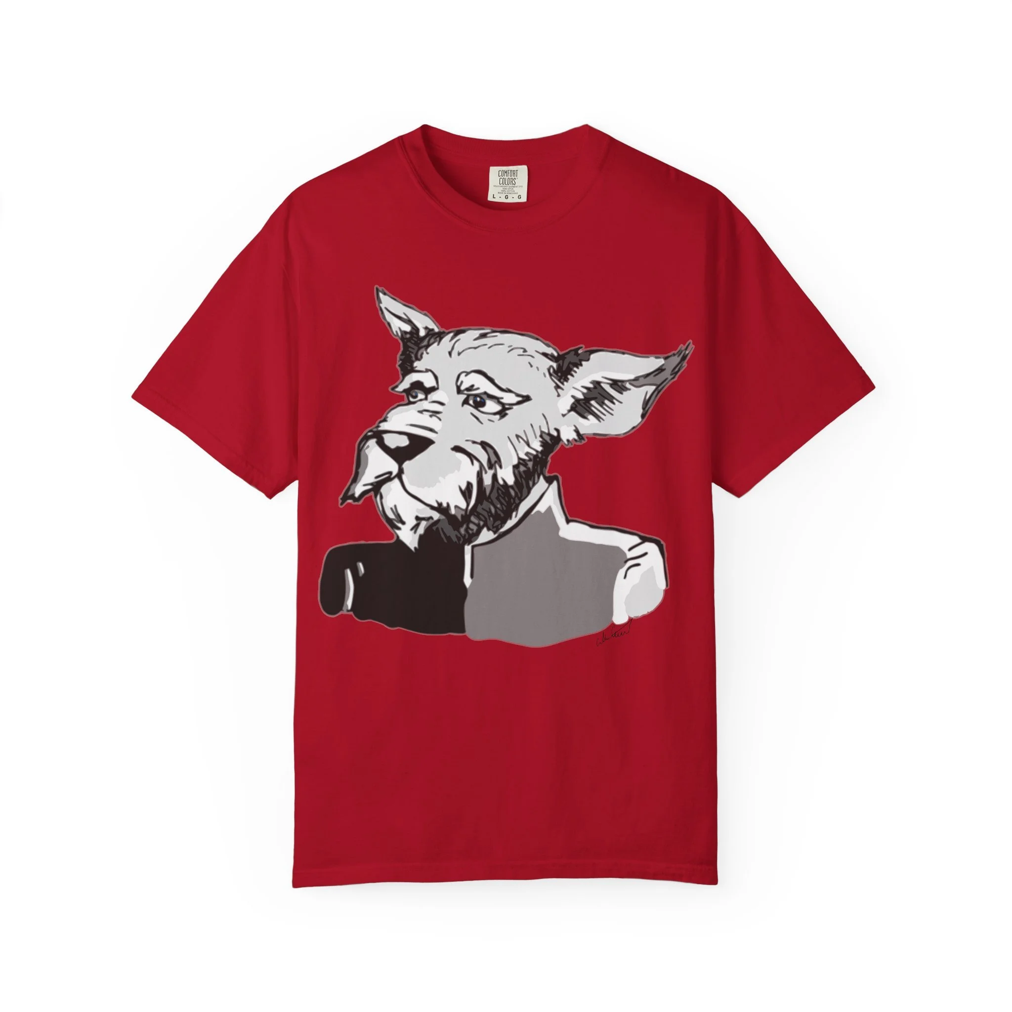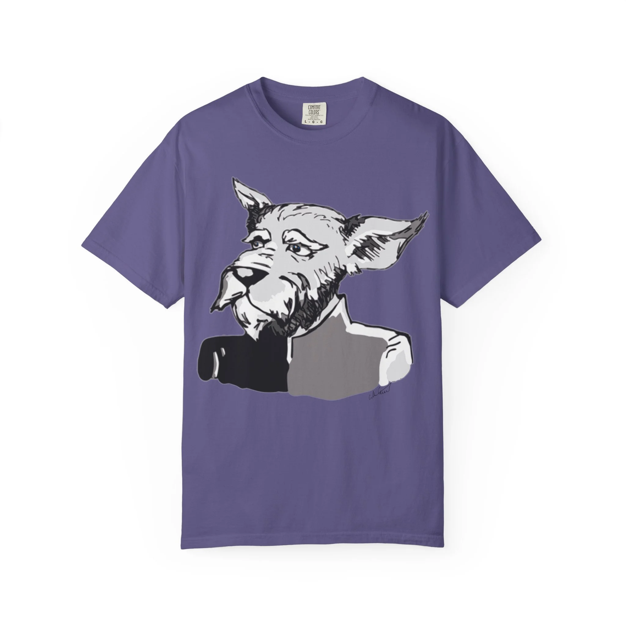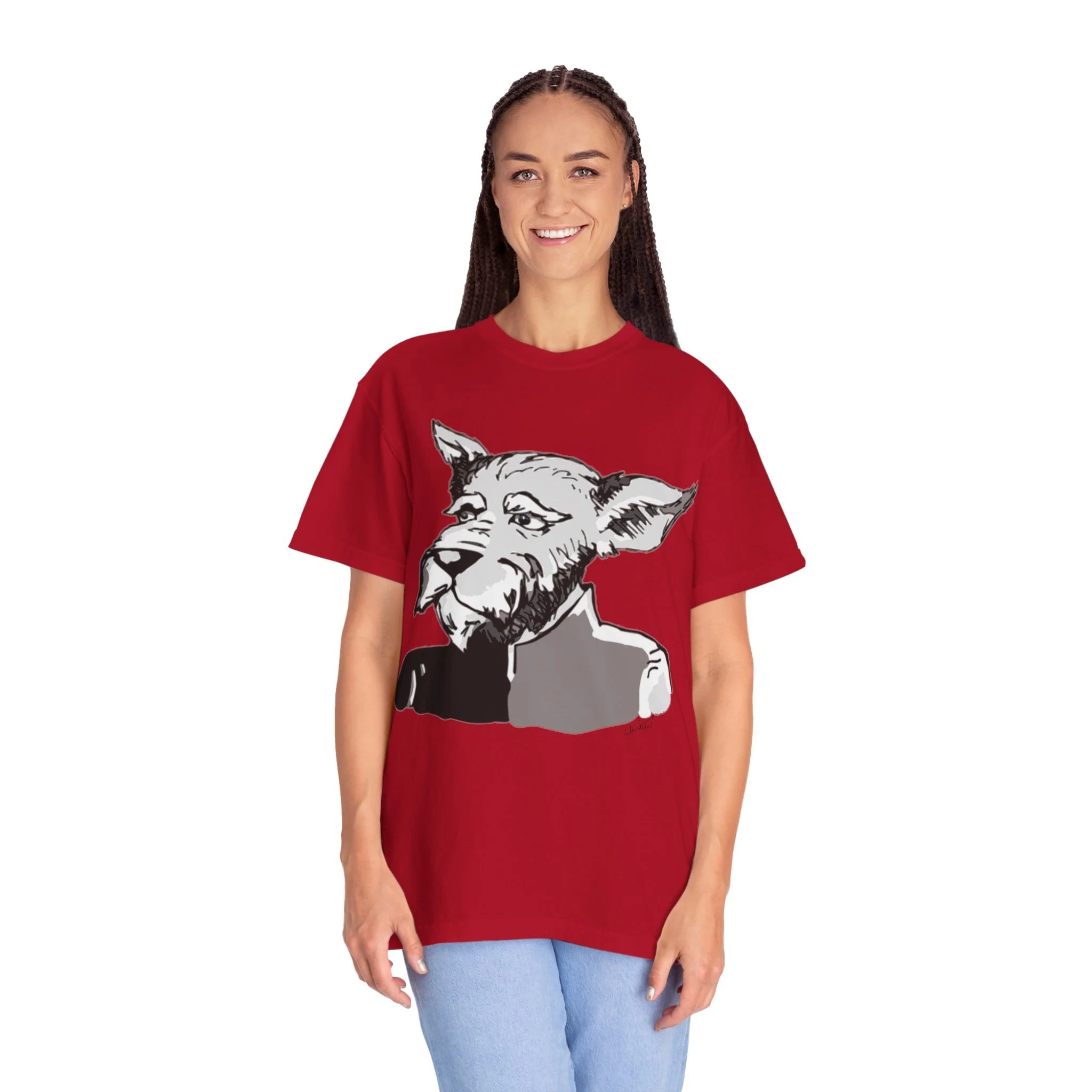 This garment-dyed tee carries a hand-drawn, slightly surreal canine portrait that feels equal parts curious and wry. The soft, washed color of the fabric and relaxed fit make it read like a worn-in favorite from day one. Picture a slow Saturday wandering an indie market or a late-night coffee run — the shirt layers easily under a jacket or stands alone as a quiet statement piece. The artwork adds personality without shouting; it suits people who collect oddball art, love low-key humor, or want a wearable sketch that sparks conversation. The overall mood is mellow, artful, and a little mischievous — a shirt you reach for when you want comfort and subtle character.