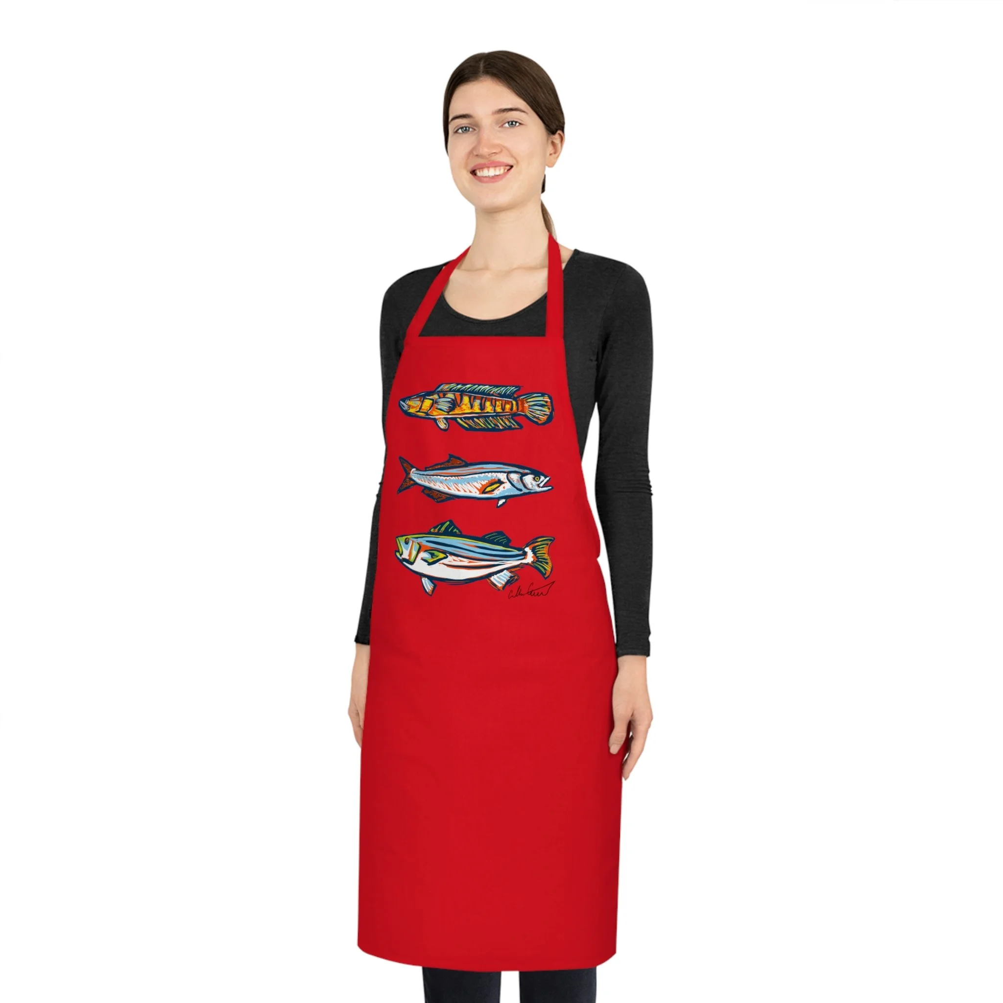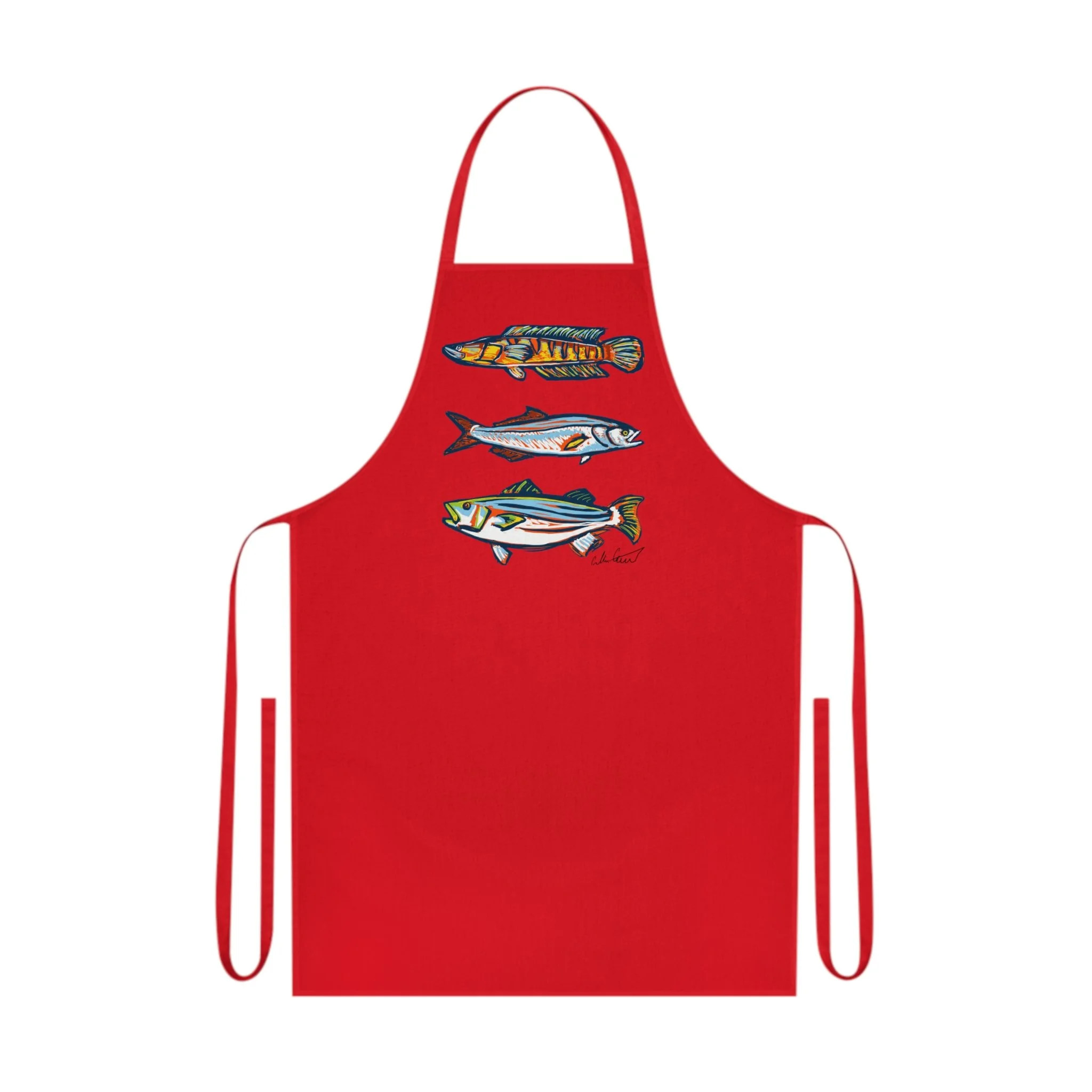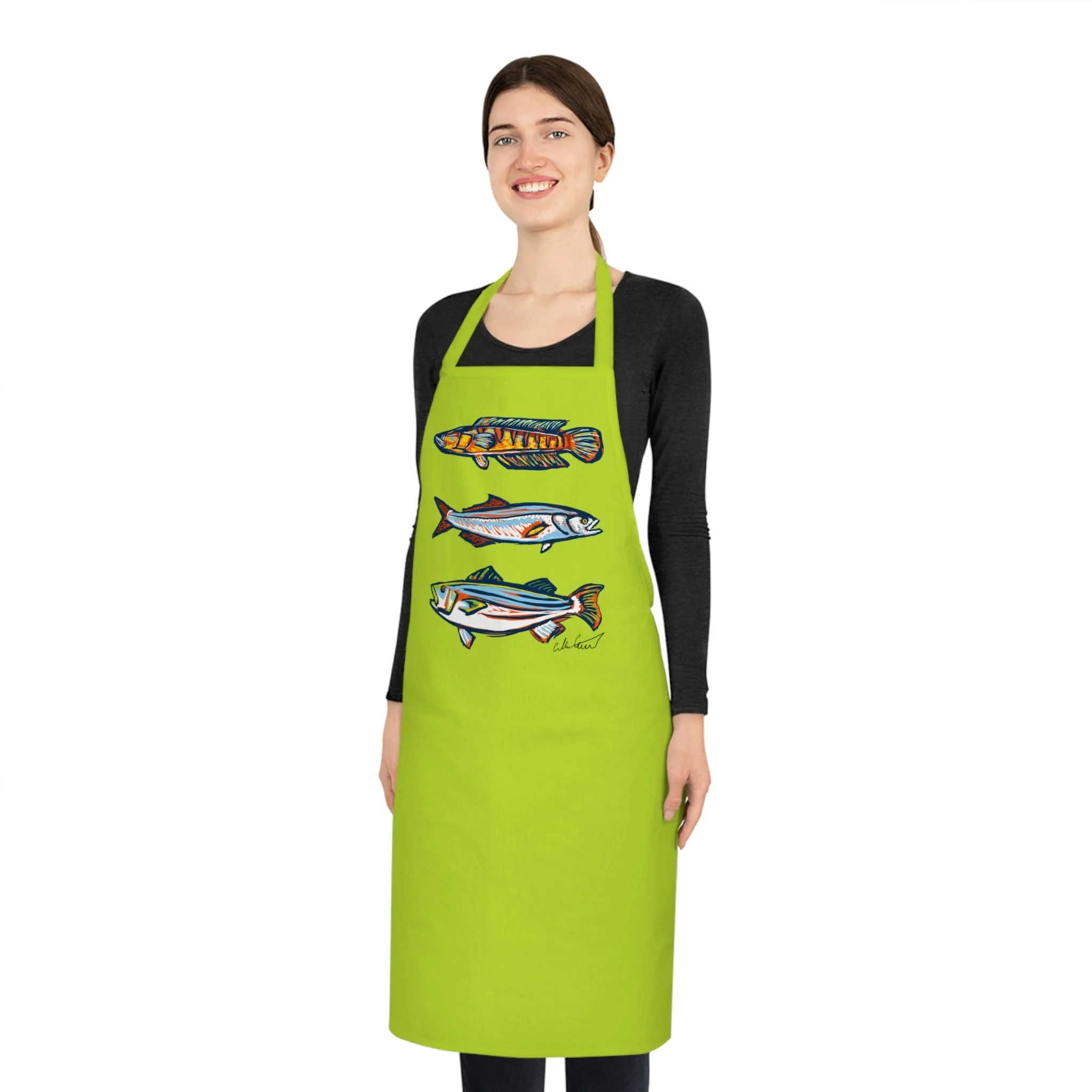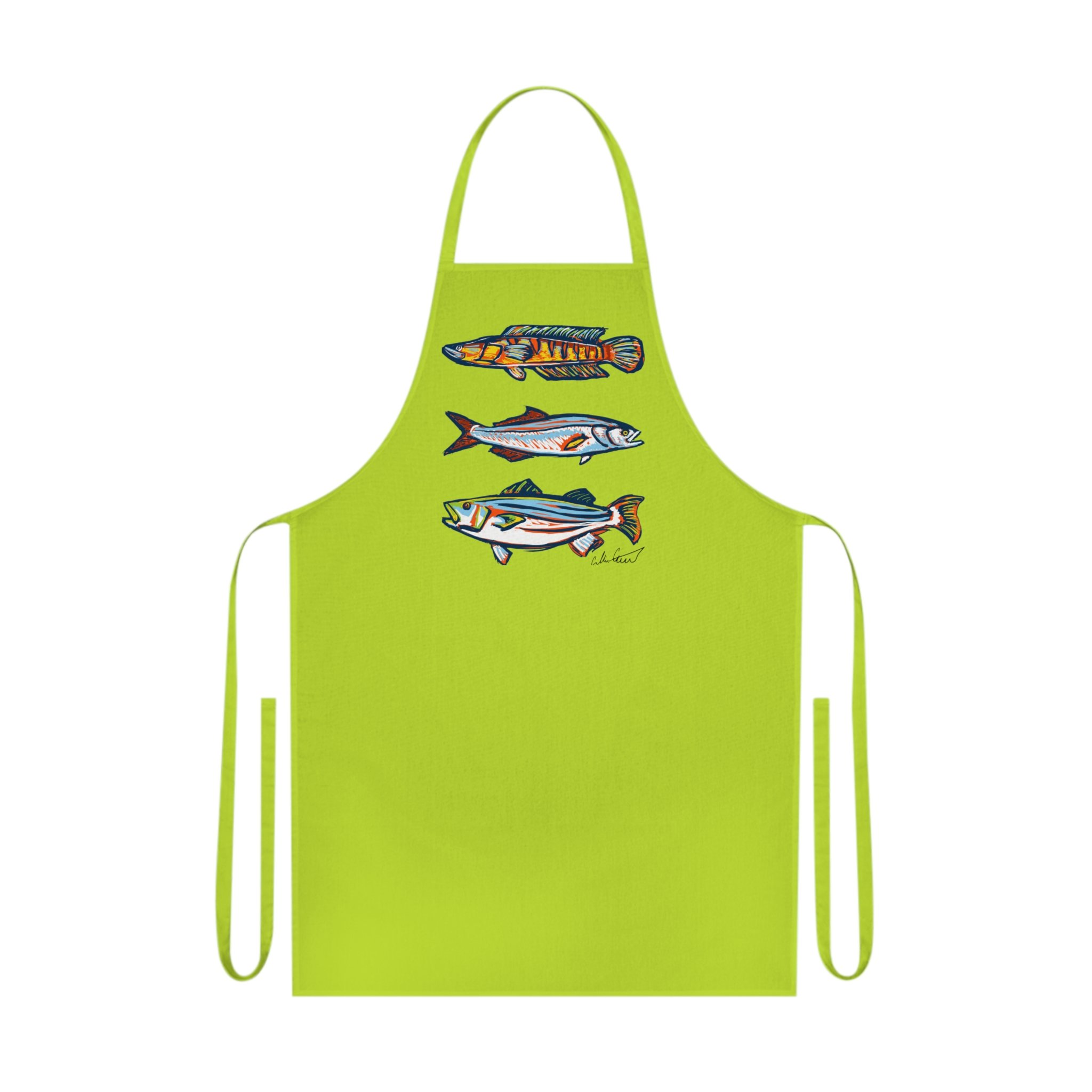Fish Trio Cotton Apron — Bright Lime Kitchen Apron with Colorful Fish Design
