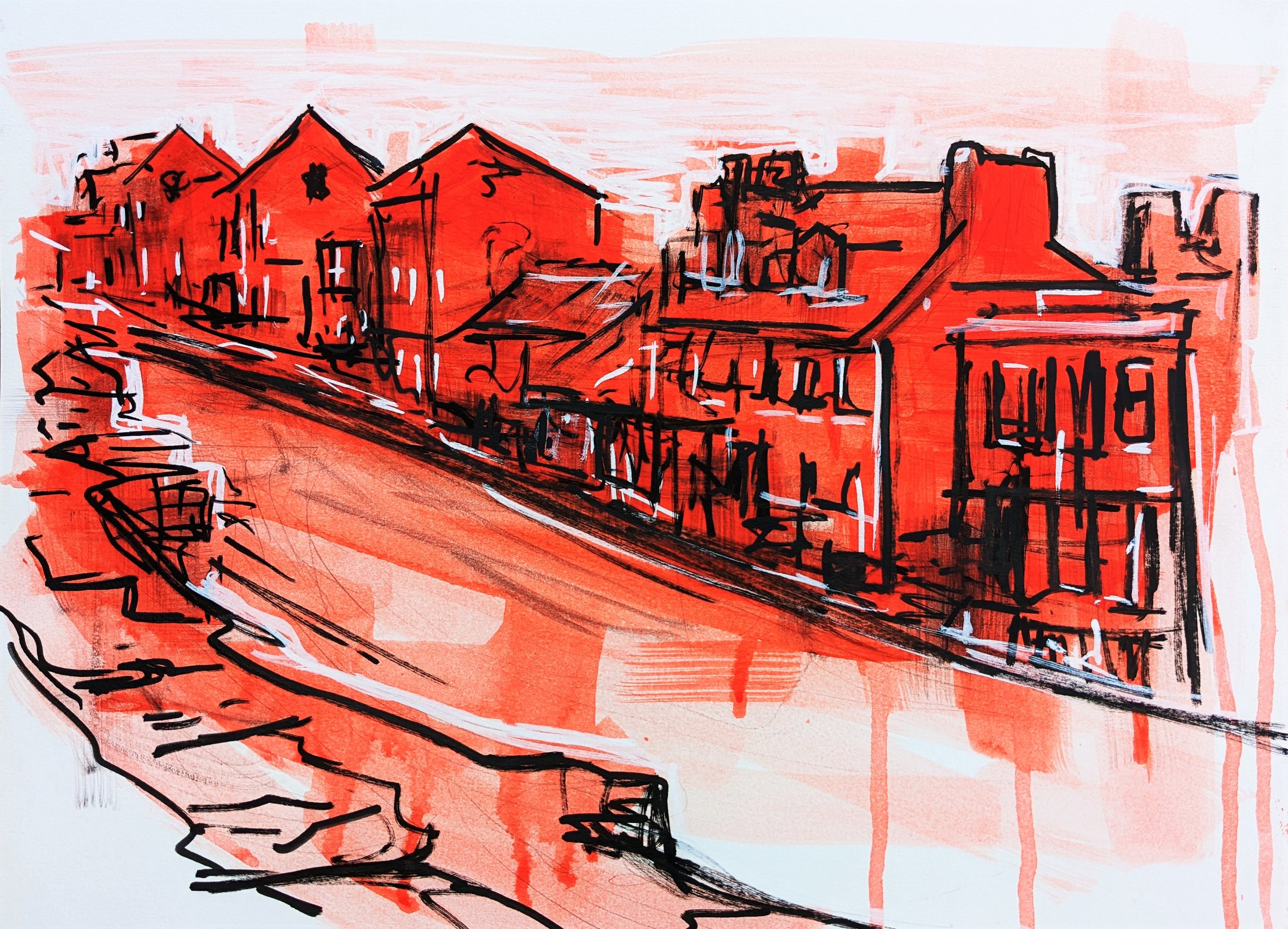 "View below St. Peters Roman Catholic Church" Acrylic on canvas
