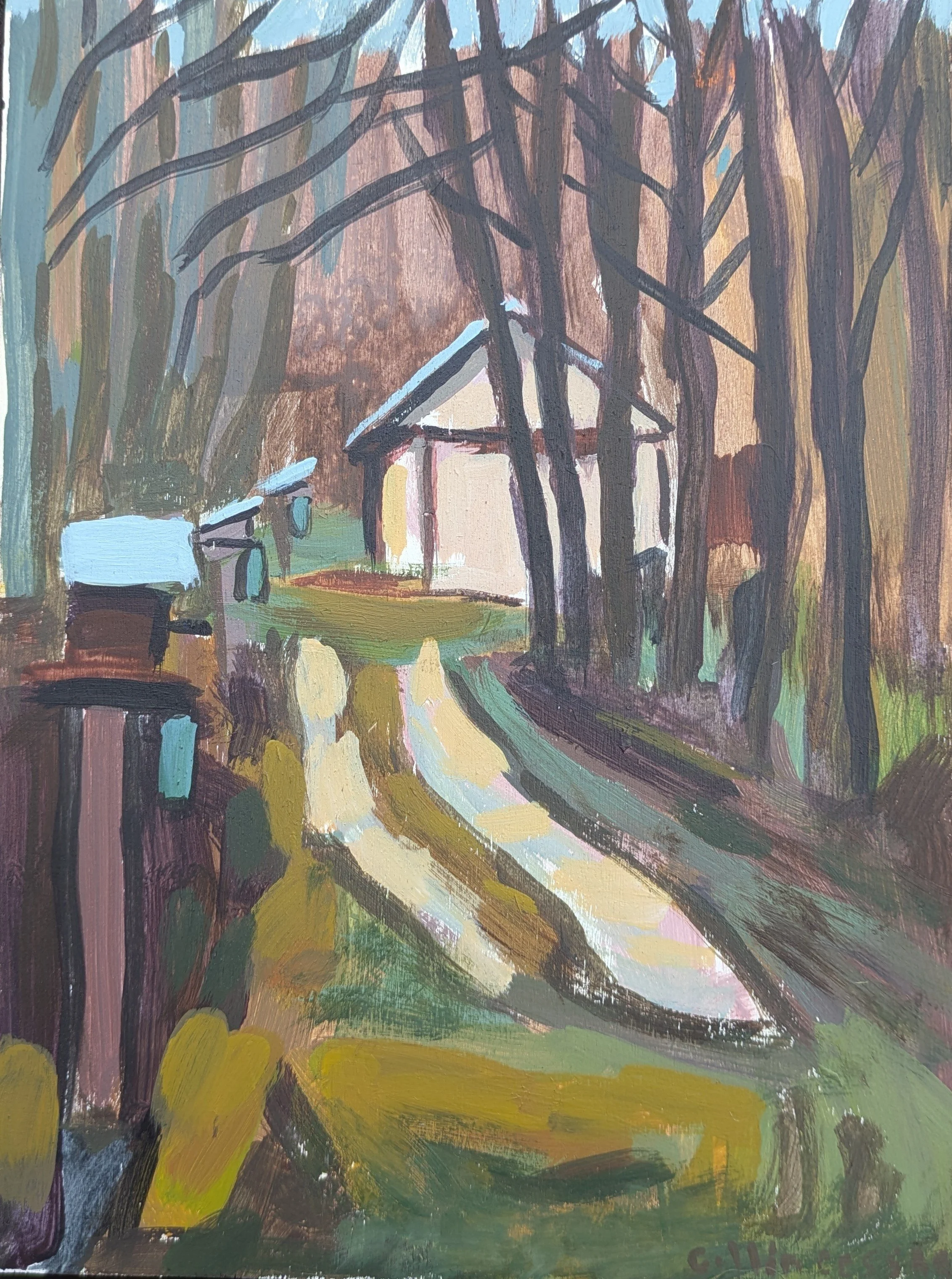 "Bedford Barn" Acrylic on mounted wood panel, 7.5" x 9.5" Collin Cessna, 2025