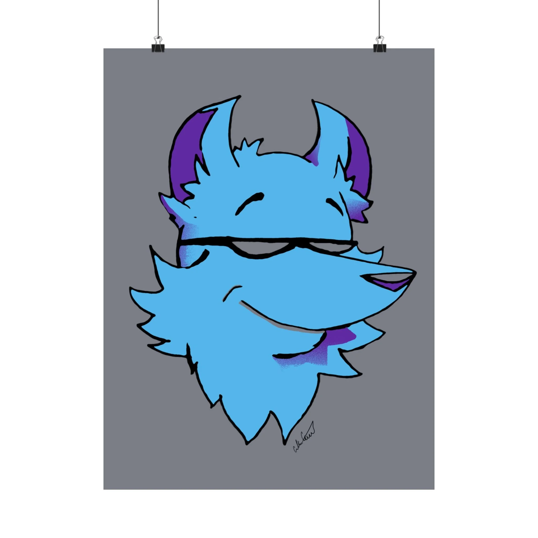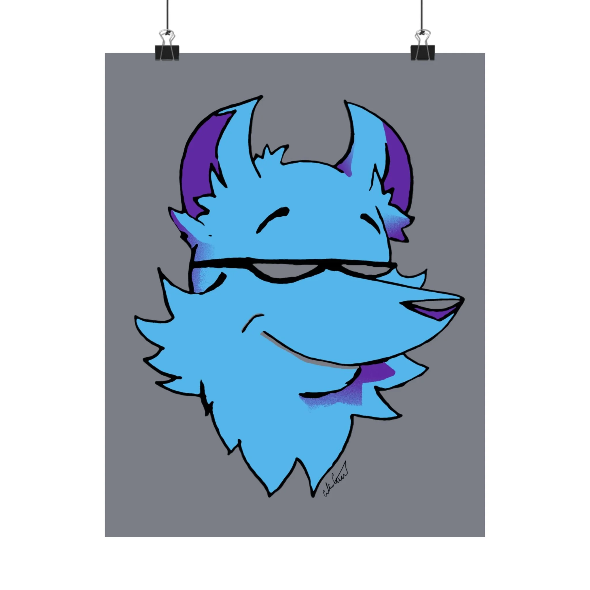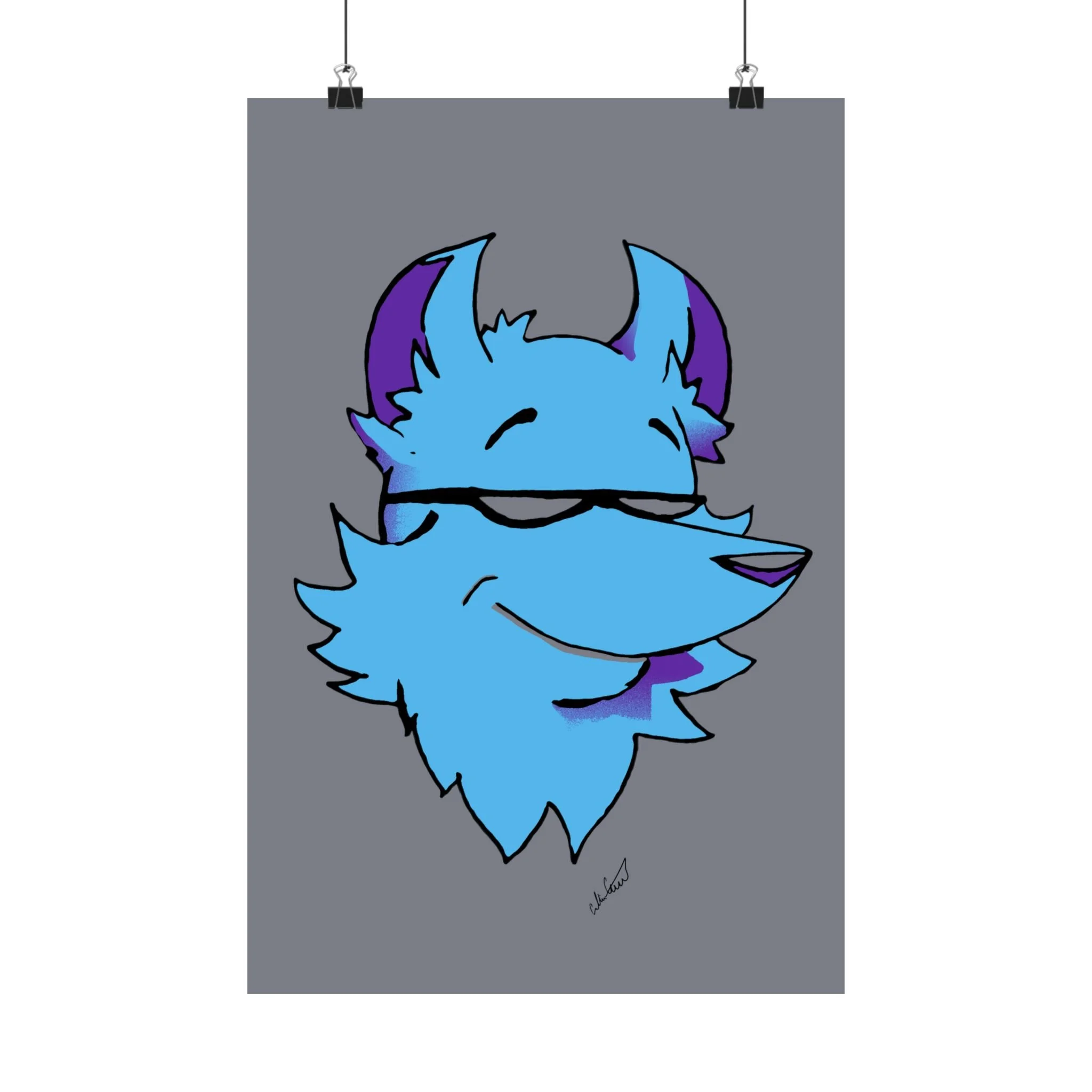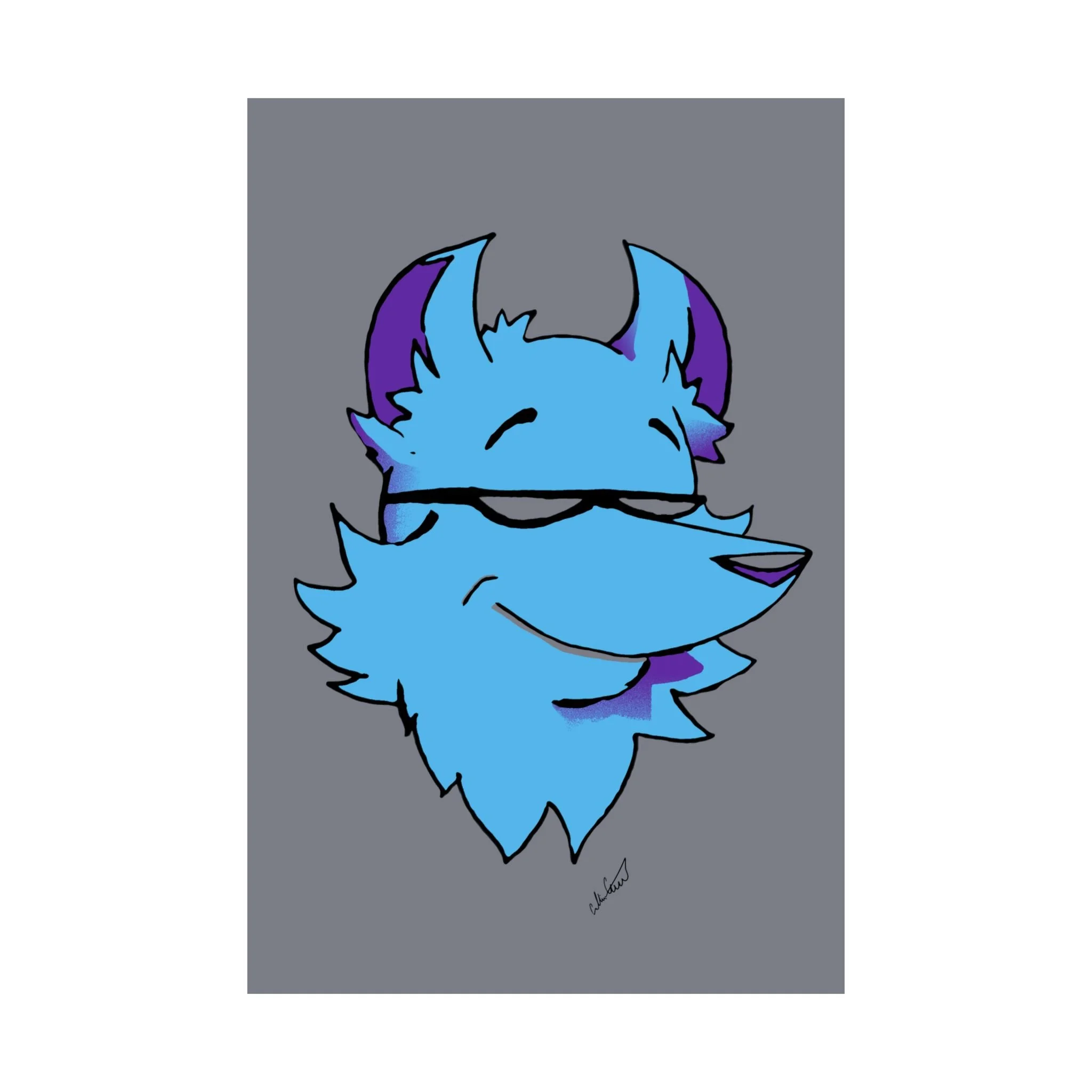 This matte vertical poster brings a playful, cool energy to any indoor wall. A stylized blue fox head, with purple accents and a confident half-smile, sits against a muted gray field — bold in color but calm in mood. The giclée printing on museum-grade archival paper keeps those bright blues and purples vivid while the matte finish softens glare, giving the image a velvety, modern look. Hang it in a bedroom, studio, or gaming nook to add character and a relaxed, slightly mischievous vibe. Sized to fit many frames and printed to last, the artwork reads like a friendly mascot that lightens long days and anchors creative spaces.