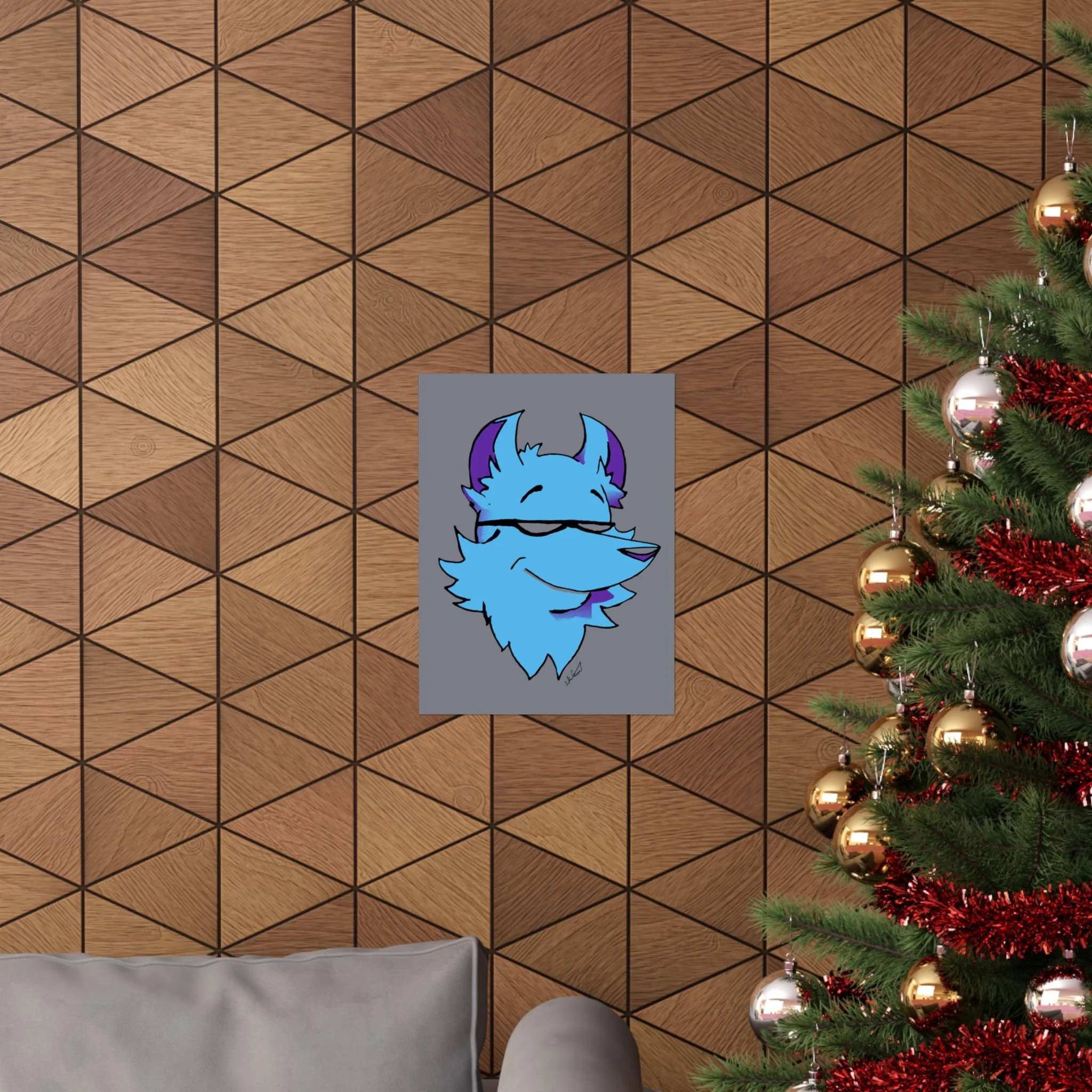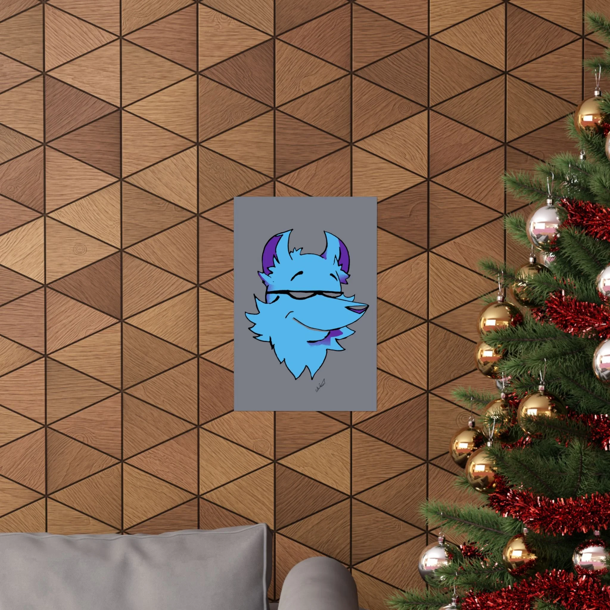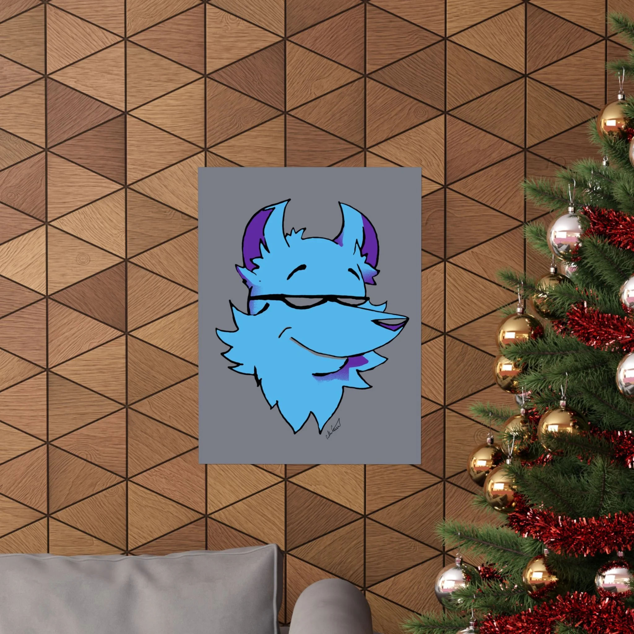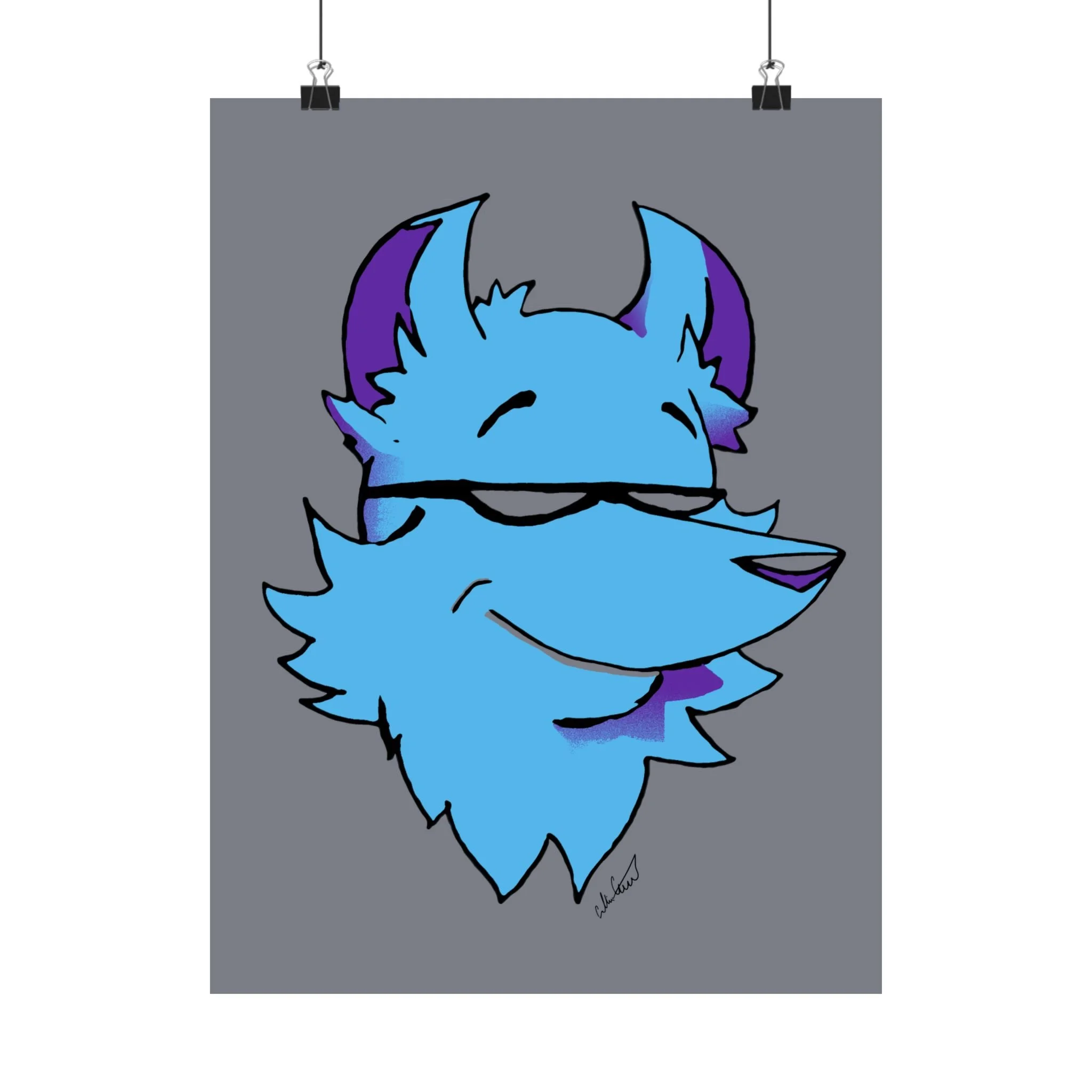 This matte vertical poster brings a playful, cool energy to any indoor wall. A stylized blue fox head, with purple accents and a confident half-smile, sits against a muted gray field — bold in color but calm in mood. The giclée printing on museum-grade archival paper keeps those bright blues and purples vivid while the matte finish softens glare, giving the image a velvety, modern look. Hang it in a bedroom, studio, or gaming nook to add character and a relaxed, slightly mischievous vibe. Sized to fit many frames and printed to last, the artwork reads like a friendly mascot that lightens long days and anchors creative spaces.